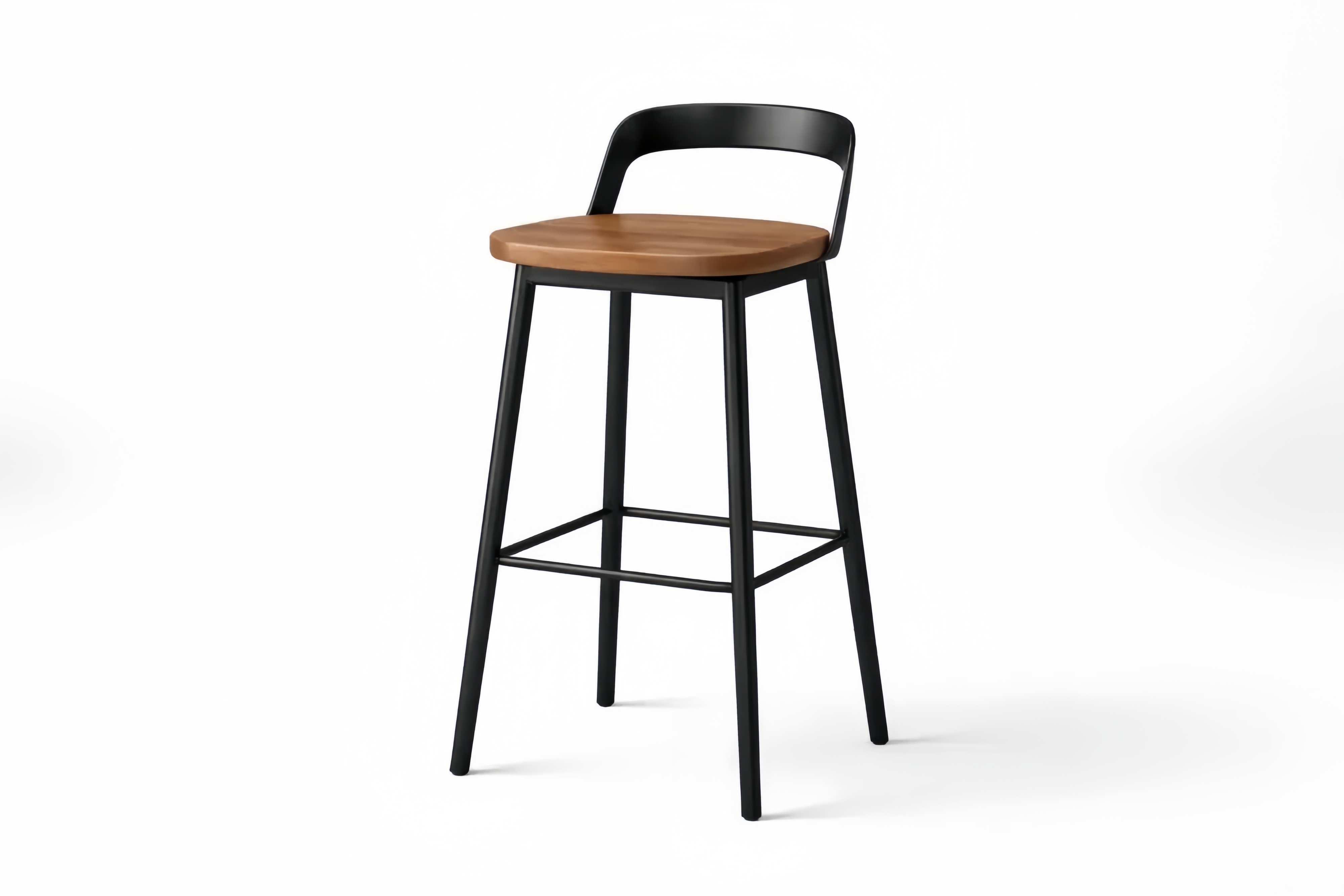 Sgabello girevole in legno massello e similpelle grigia con poggiapiedi