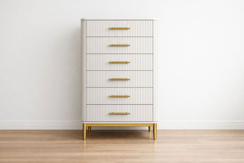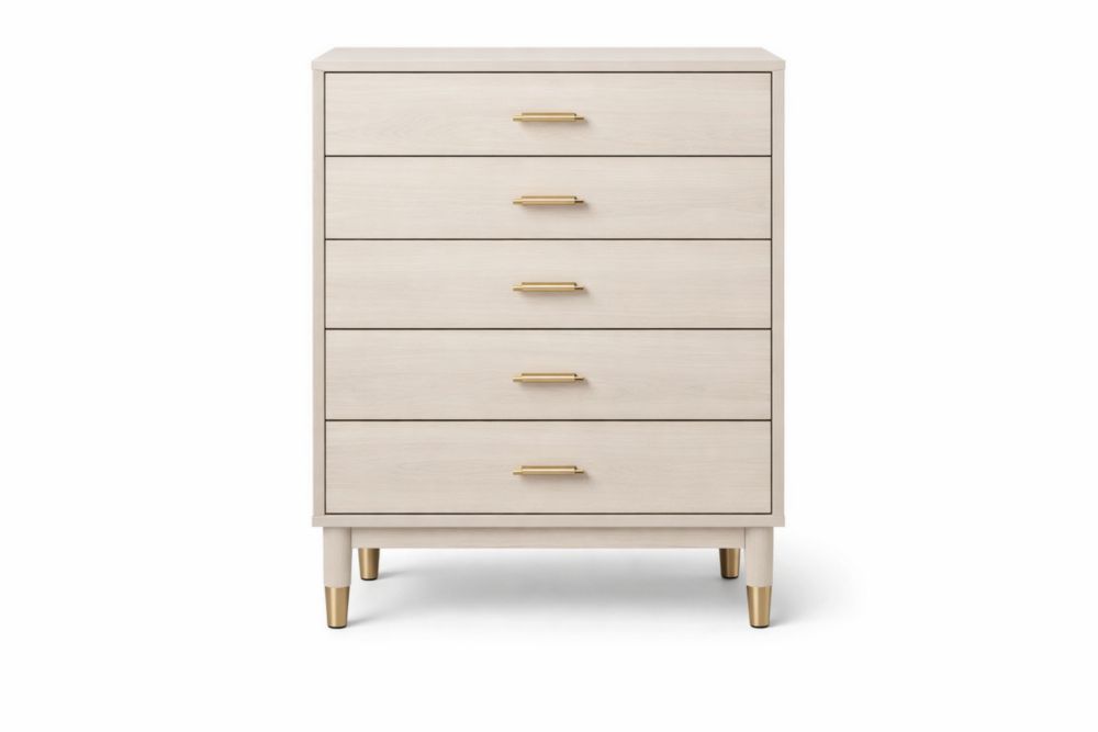 Cassettiera in Legno Massello Beige con 5 Cassetti
