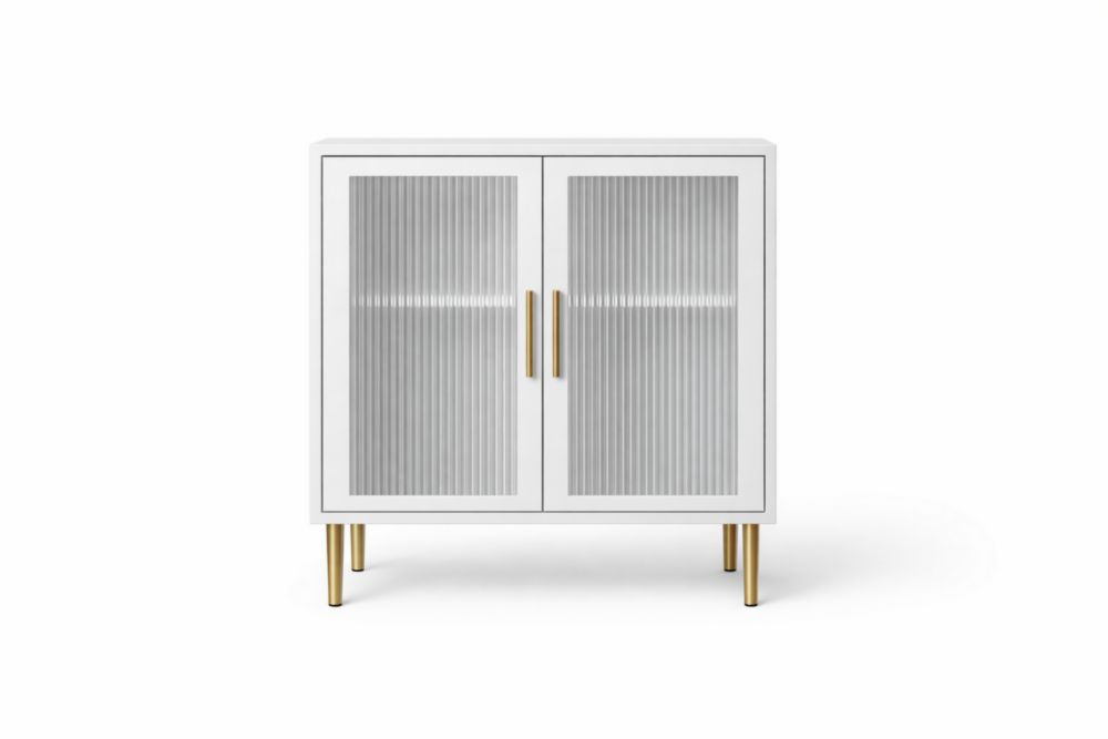 Credenza MDF Bianco con Ante in Vetro Rigato e Gambe in Acciaio Dorato