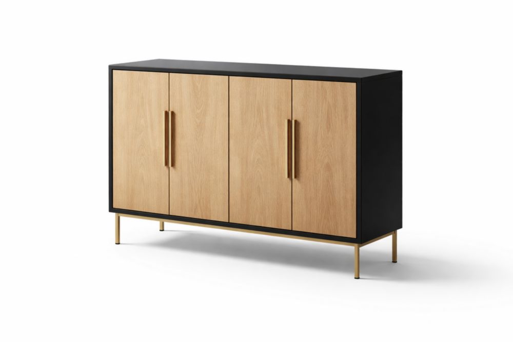 Credenza nera 4 ante in MDF con gambe in legno massello