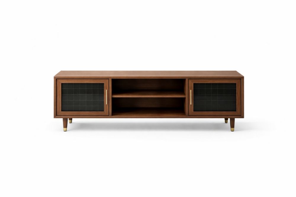 Mobile TV in Legno di Noce con Ante in Vetro Nero