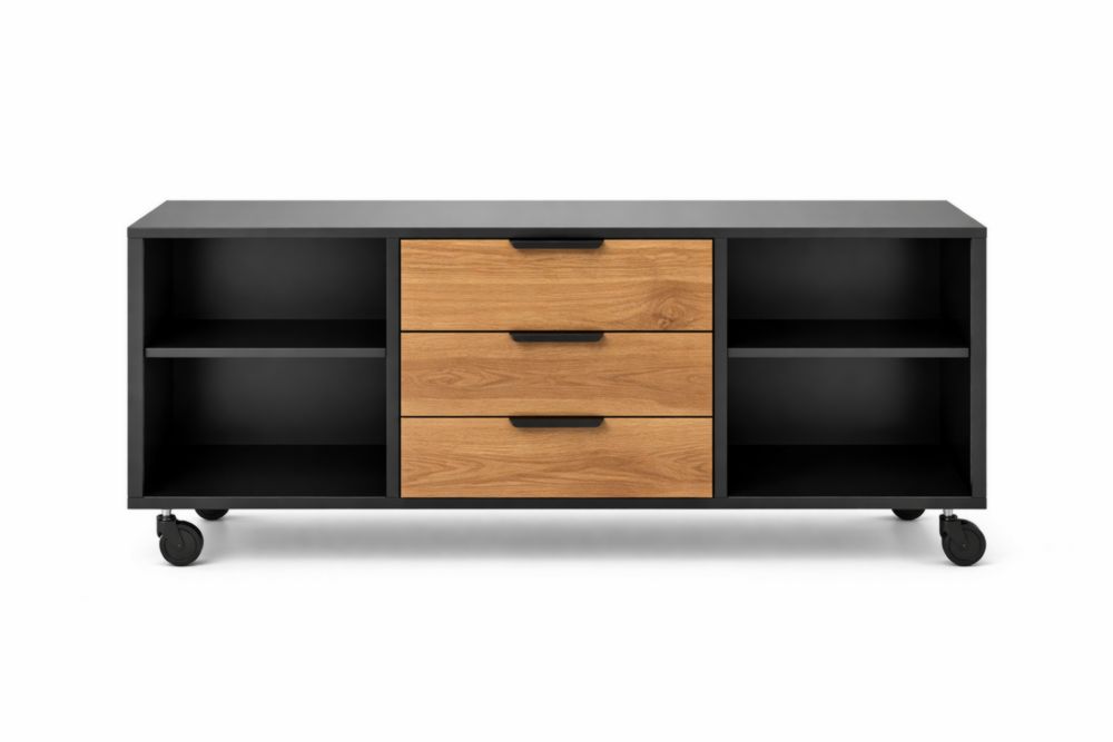 Mobile Porta TV con Ruote in MDF Nero e Rovere