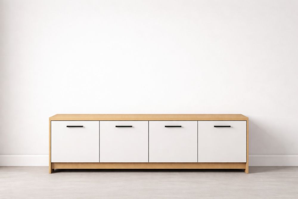 Mobile TV bianco e legno con ante in MDF