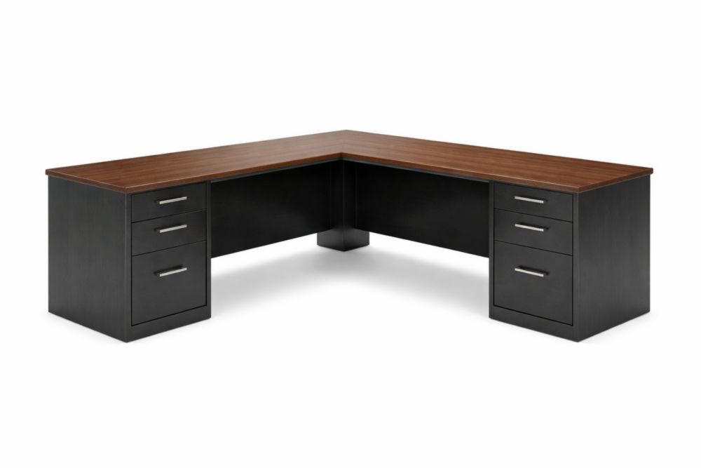 Scrivania ad angolo in legno massello e melaminico con cassetti