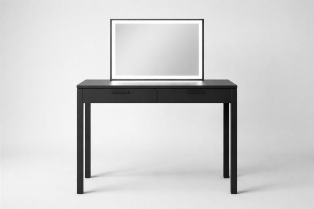 Tavolo da Toeletta Nero con Specchio Integrato in MDF e Vetro