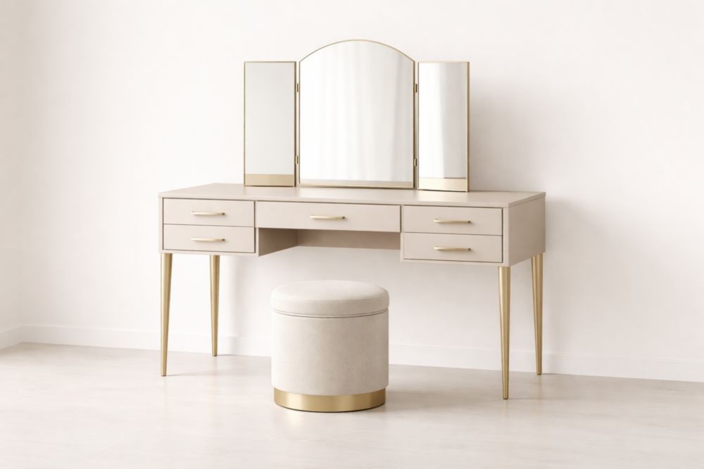 Cinque cassetti per l'organizzazione dei cosmetici.