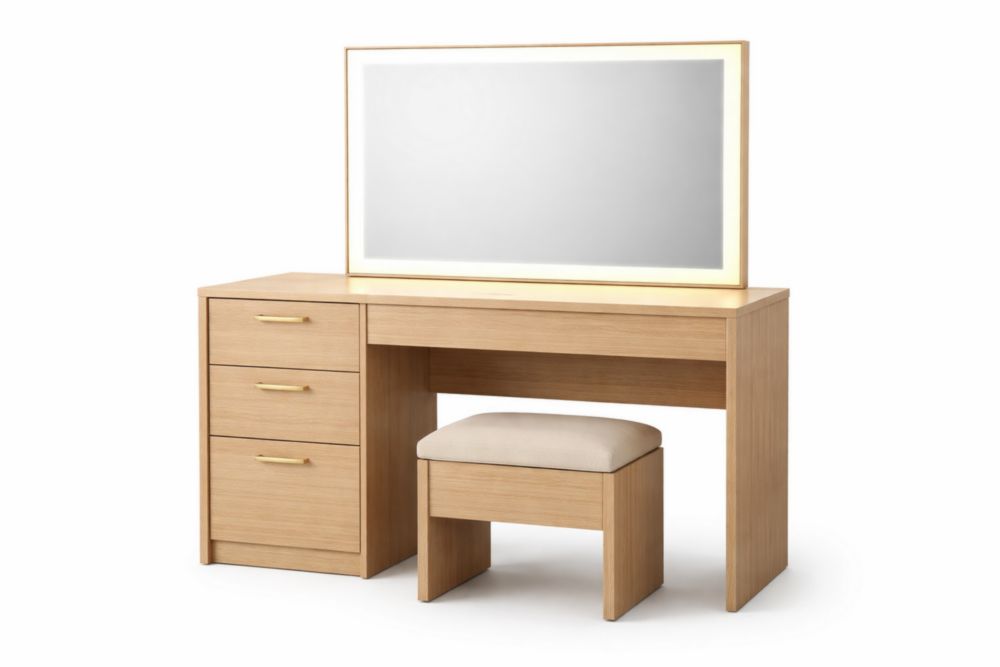 Componenti inclusi: Specchio, sgabello con seduta in tessuto poliestere imbottito