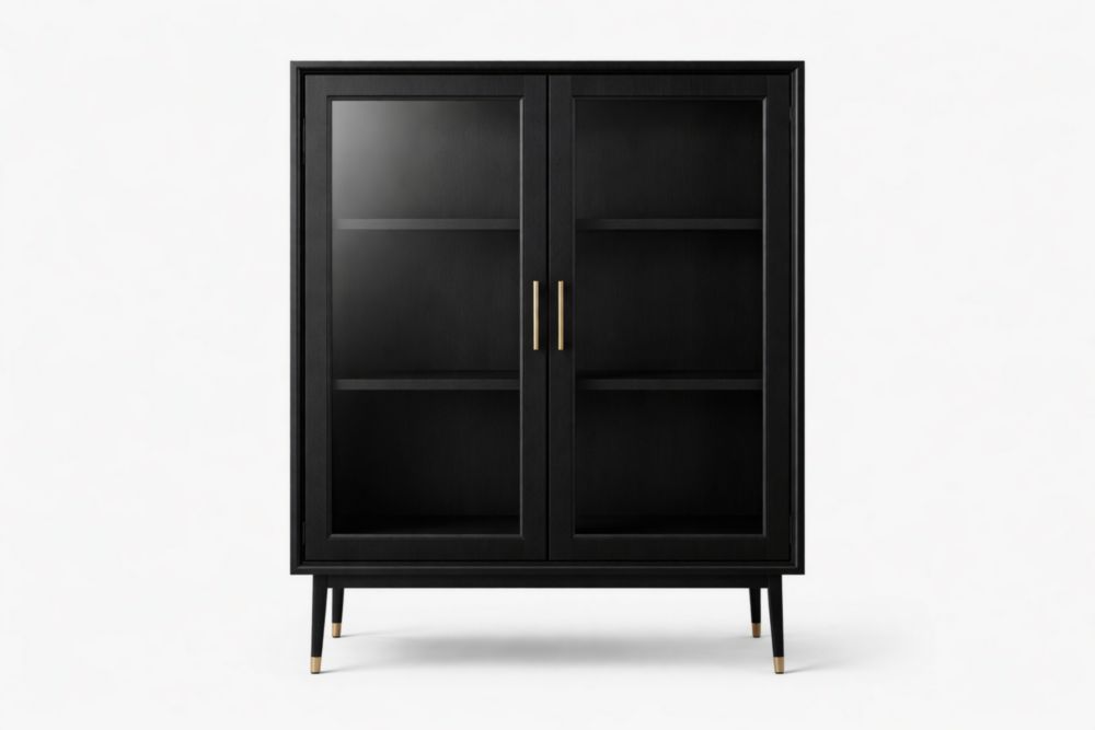Vetrina nero in legno con ante in vetro temperato e maniglie in alluminio 180x120x45 cm(H x L x P)